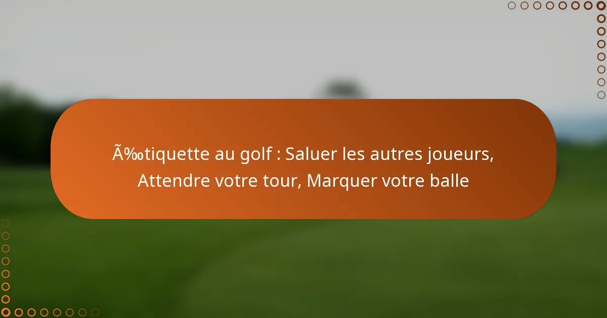 Étiquette au golf : Saluer les autres joueurs, Attendre votre tour, Marquer votre balle