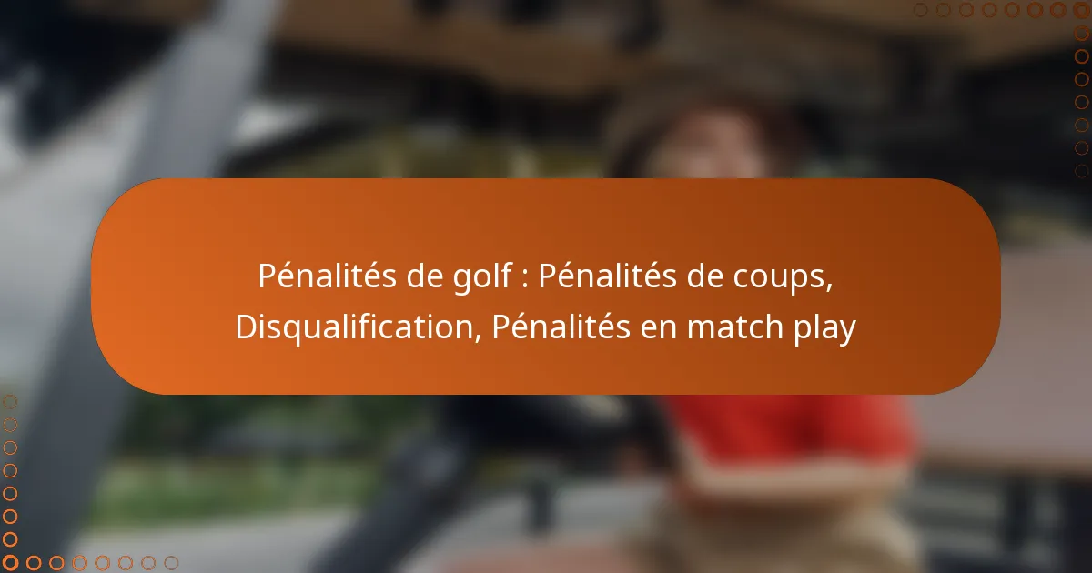 La pénalité pour non-remplacement correct d’une balle peut varier en fonction des circonstances spécifiques. En général, si un joueur ne remet pas sa balle correctement, il peut encourir une pénalité d’un coup. Dans certains cas, si l’erreur est jugée grave, le joueur peut être disqualifié du trou.