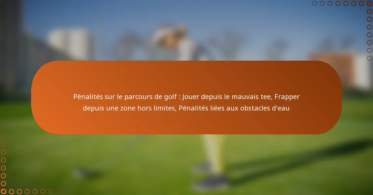 Il est important de noter que les joueurs doivent toujours consulter les règles locales du parcours, car certaines peuvent avoir des réglementations spécifiques concernant les pénalités pour cette violation. Comprendre ces pénalités peut aider les joueurs à prendre des décisions éclairées pendant le jeu.