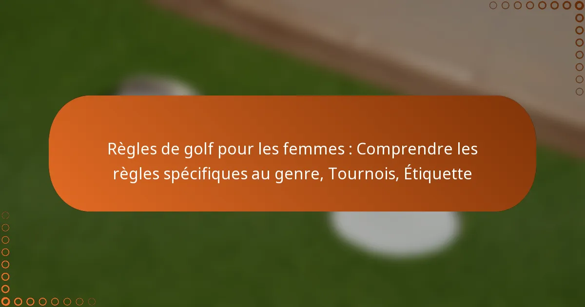 Comprendre les règles spécifiques au genre du golf pour les femmes est essentiel pour favoriser un environnement de jeu équitable et agréable. Ces réglementations couvrent divers aspects, y compris les spécifications de l’équipement, les codes vestimentaires et l’étiquette, qui peuvent influencer de manière significative l’expérience des golfeuses lors des tournois. En respectant ces directives, les femmes peuvent naviguer dans le sport avec confiance et respect pour leurs camarades joueuses.